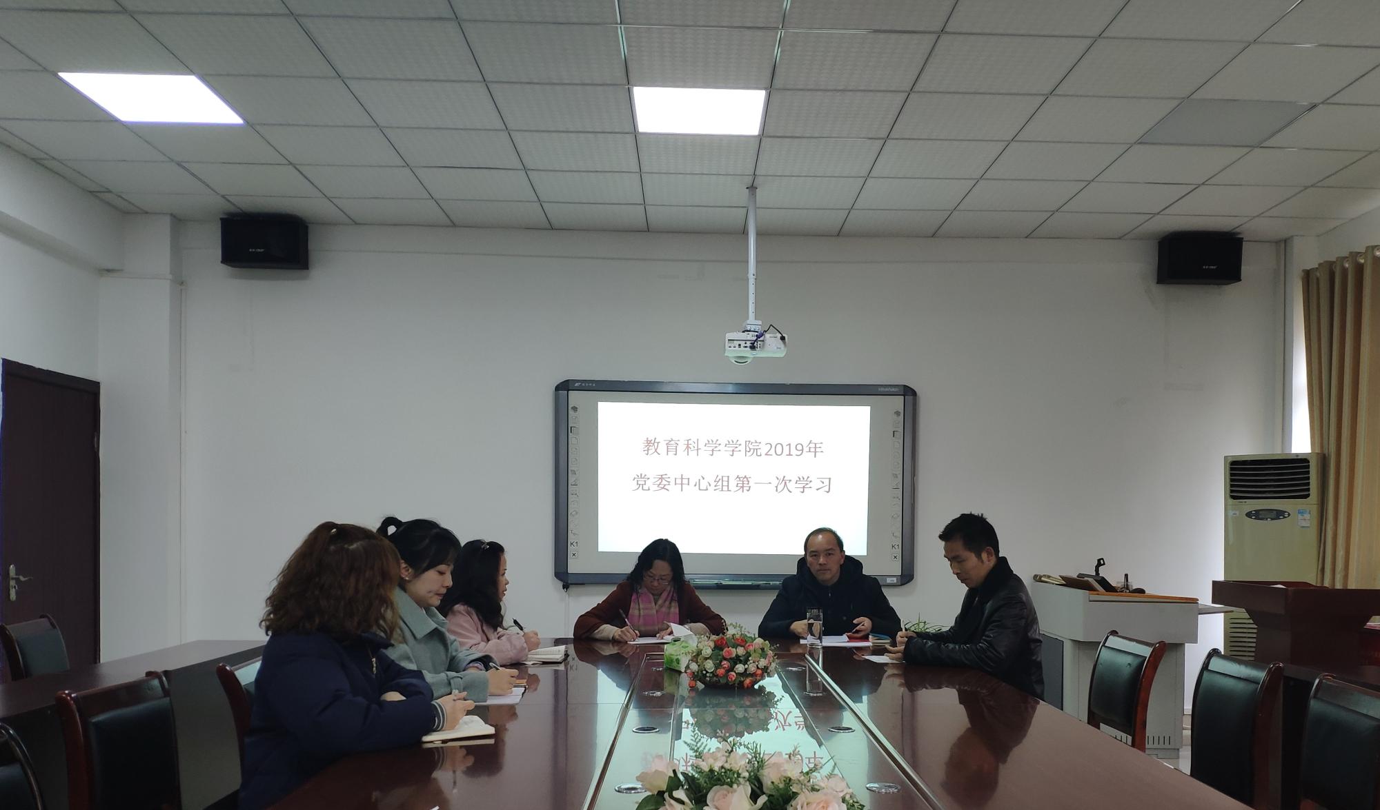 2019年党委中心组第一次集中学习在逸夫楼321会议室进行。院党委书记彭祥友、院长刘红、副院长袁川及办公室、团委、教工党支部、学生党支部主要负责人到场参加。学习活动由彭祥友主持。