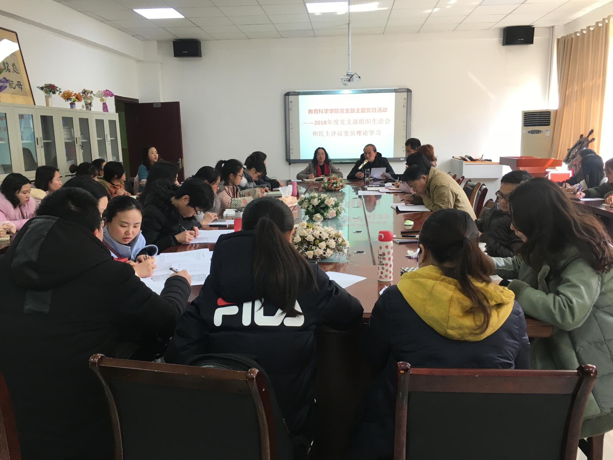 全体党员在学院会议室开展了党支部主题党日学习活动:2018年度组织生活会和民主评议党员理论学习,教师党支部书记李琴主持学习。