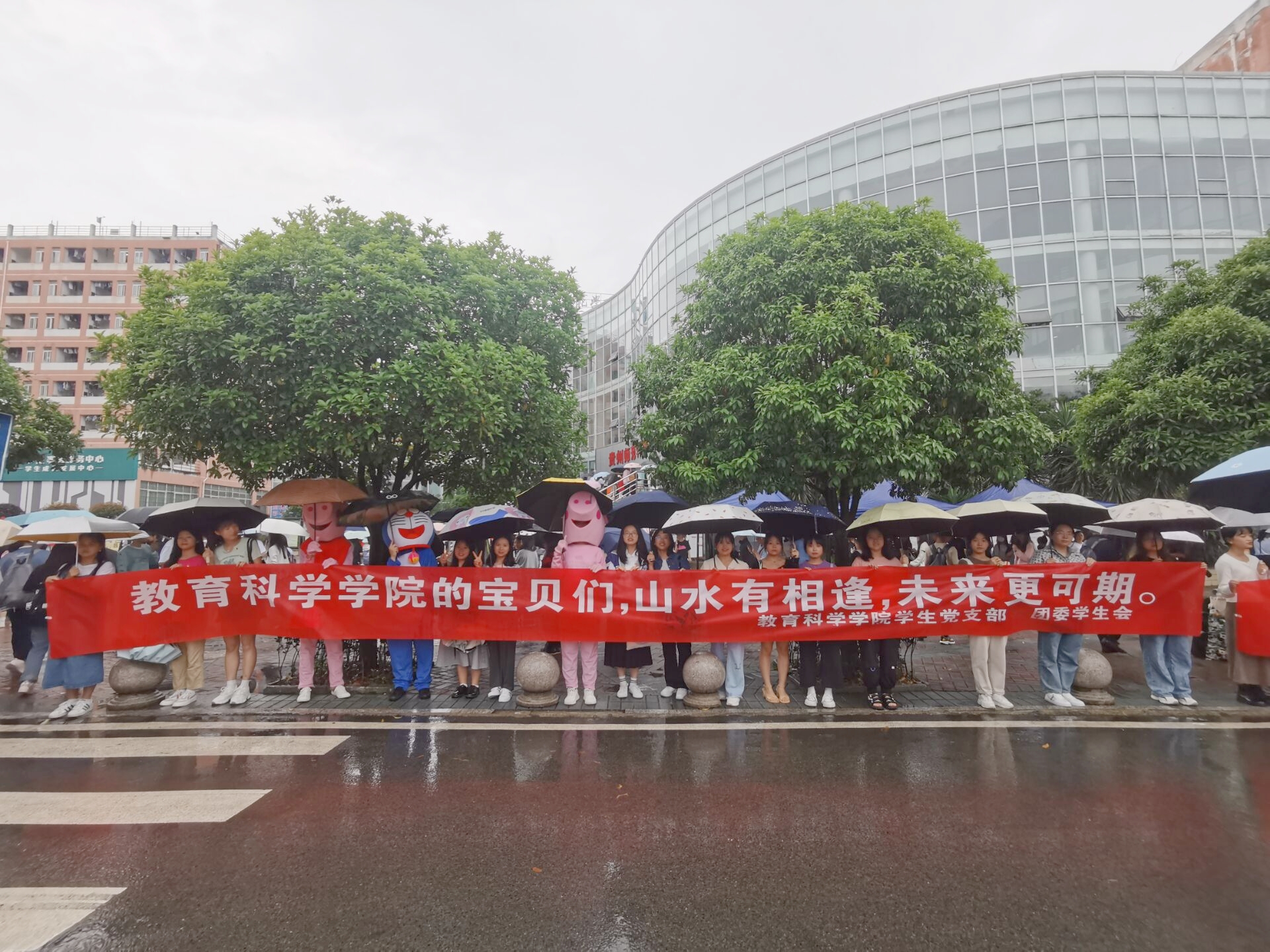 学院为全体毕业生定制了一份毕业纪念品(书签),印有“师院印象”的字样,并安排了志愿者为毕业生搬运行李。在感恩食堂前还为学子们拉上祝福的横幅,祝福大家“山水有相逢,未来更可期”。