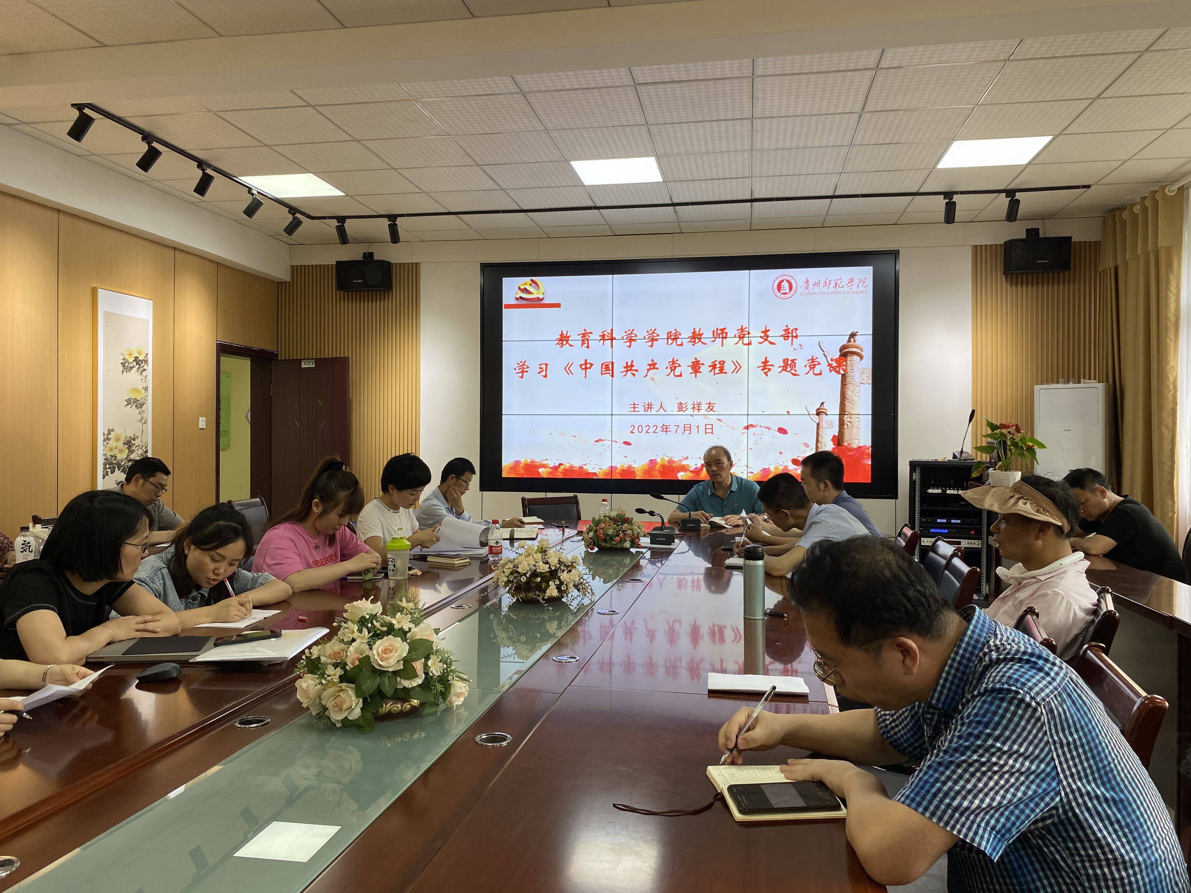 首先,学院党委书记彭祥友为全体党员围绕《中国共产党章程》上了一次专题党课,他详细讲述了中国共产党历届代表大会召开的情况,以及每次对《中国共产党章程》的修改、规范和完善的情况,他强调,在新时代每个党员更应该认真履行党员义务,充分发挥先锋模范带头作用,牢记初心、砥砺前行。随后,全体与会党员在会场观看了红色影片《觉醒年代》,感受中华民族开启新纪元的精神觉醒和文化觉醒;最后,与会党员线上观看了学校“砥砺奋进新征程 喜迎党的二十大”庆祝“七一”建党101周年活动的直播情况。