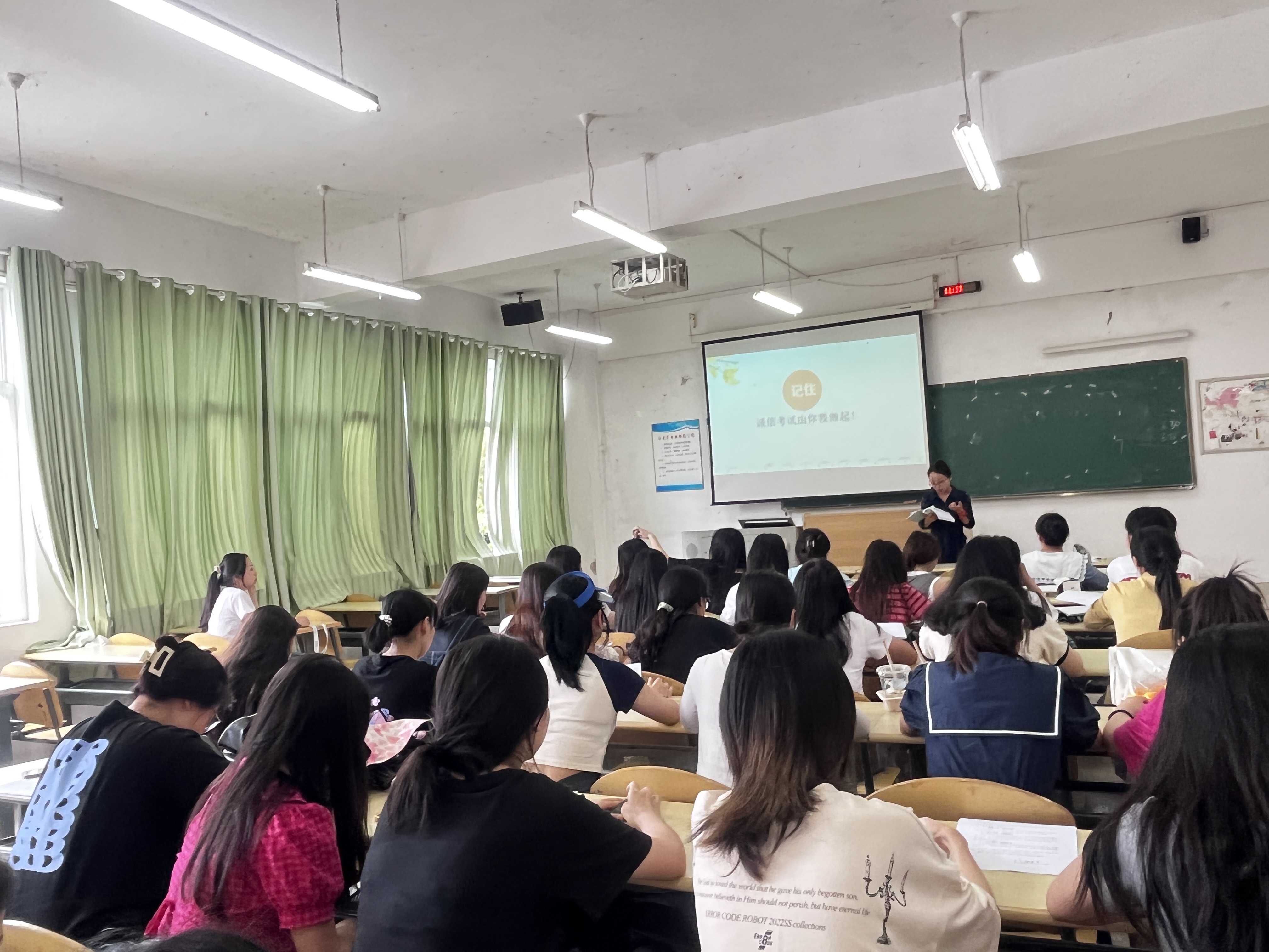 会上,首先组织同学们认真学习《国家教育考试违规处理办法》、《贵州师范学院学生违纪处分办法》等规章制度中有关组织作弊、替考、考试作弊等违纪处分相关政策规定,并结合对违纪案例的分析,让同学们清楚的认识到考试作弊对自身的严重危害性。紧接着,游超颖强调,要充分发挥学生党员、班干部在复习迎考和诚信考试中的榜样示范作用,严禁作弊事件发生,并对考试作弊的不良影响进行分析,教育引导同学们树立诚实考试、抵制作弊的思想观念,以正确的态度和充分的复习迎接期末考试。最后,每位同学认真阅读并签订了《诚信考试倡议书》。