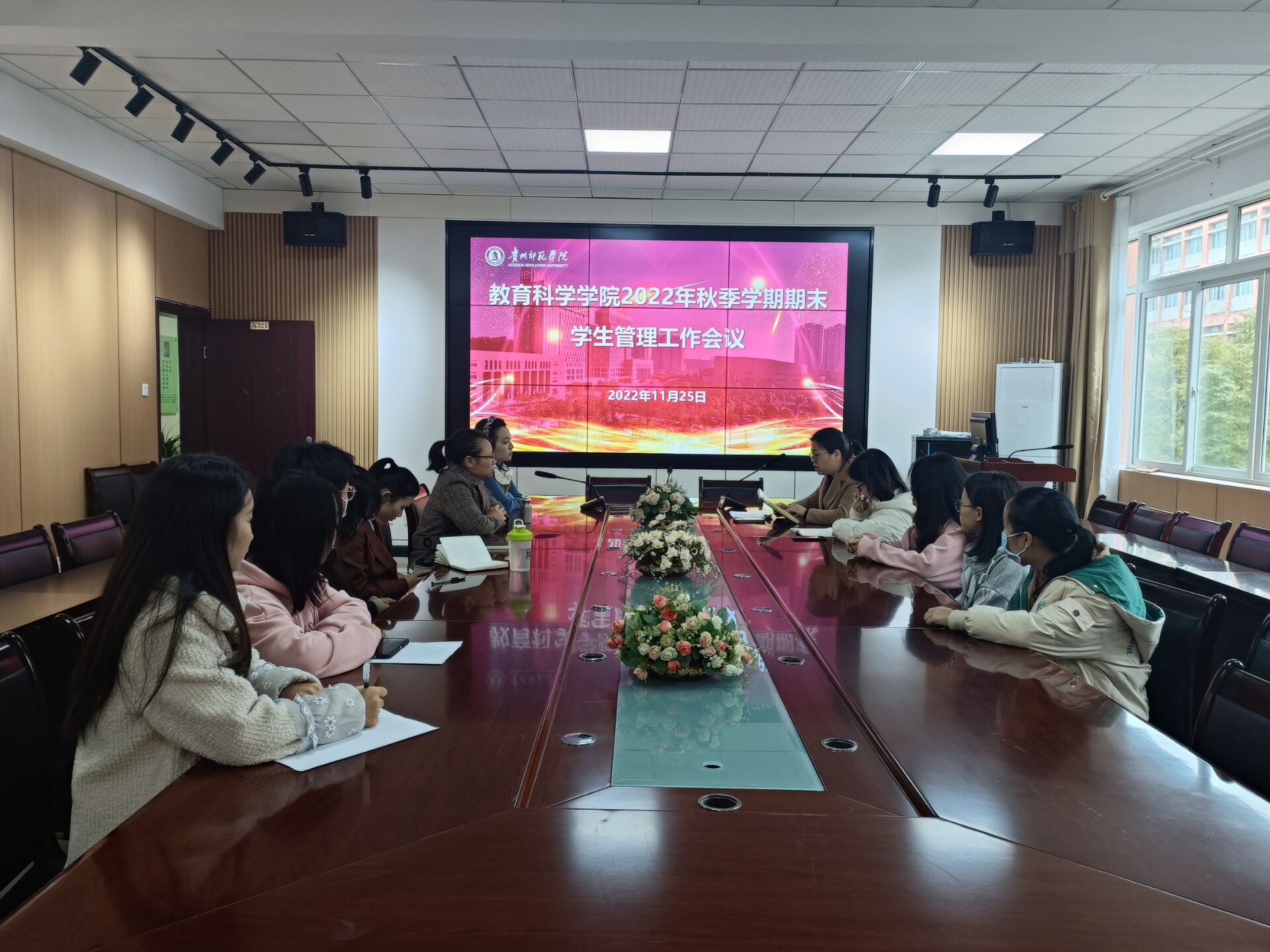 在逸夫楼会议室召开2022年秋季学期期末学生管理工作会议,学院党委副书记傅小芳、学院团委书记张源、全体专兼职辅导员及科研助理参加了会议。此次会议采取线上线下方式进行,会议由傅小芳主持。