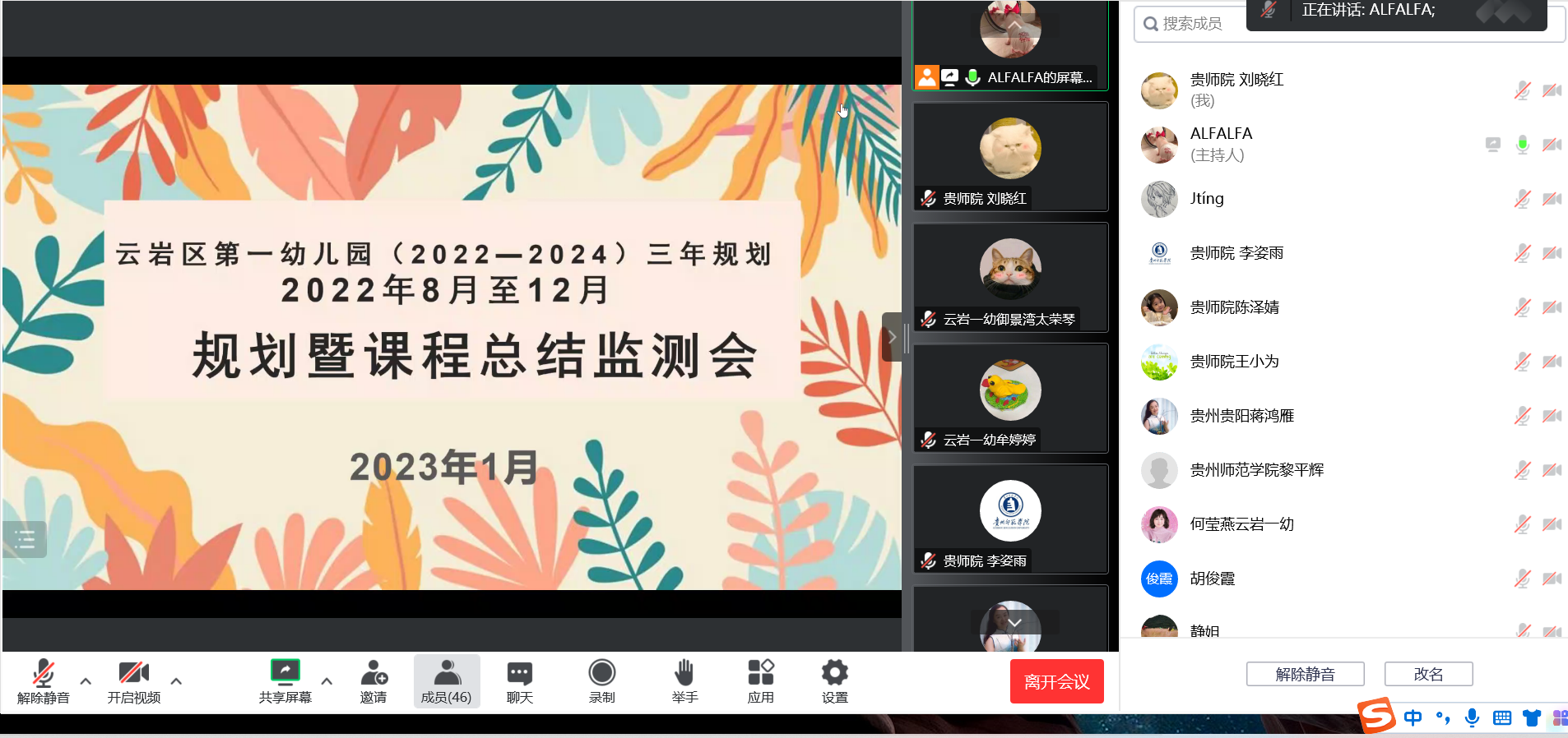 副院长黎平辉,学前教育系教师李建年、刘晓红、王小为、陈泽婧和李姿雨等参加了云岩一幼(2022-2024)三年规划2022年规划暨课程总结监测会(腾讯会议)。出席会议的还有原实验二幼园长黄保秀、副园长李士莹,中建设区居委会王芳书记、云岩一幼家委会代表以及园务会成员和各部门负责人。