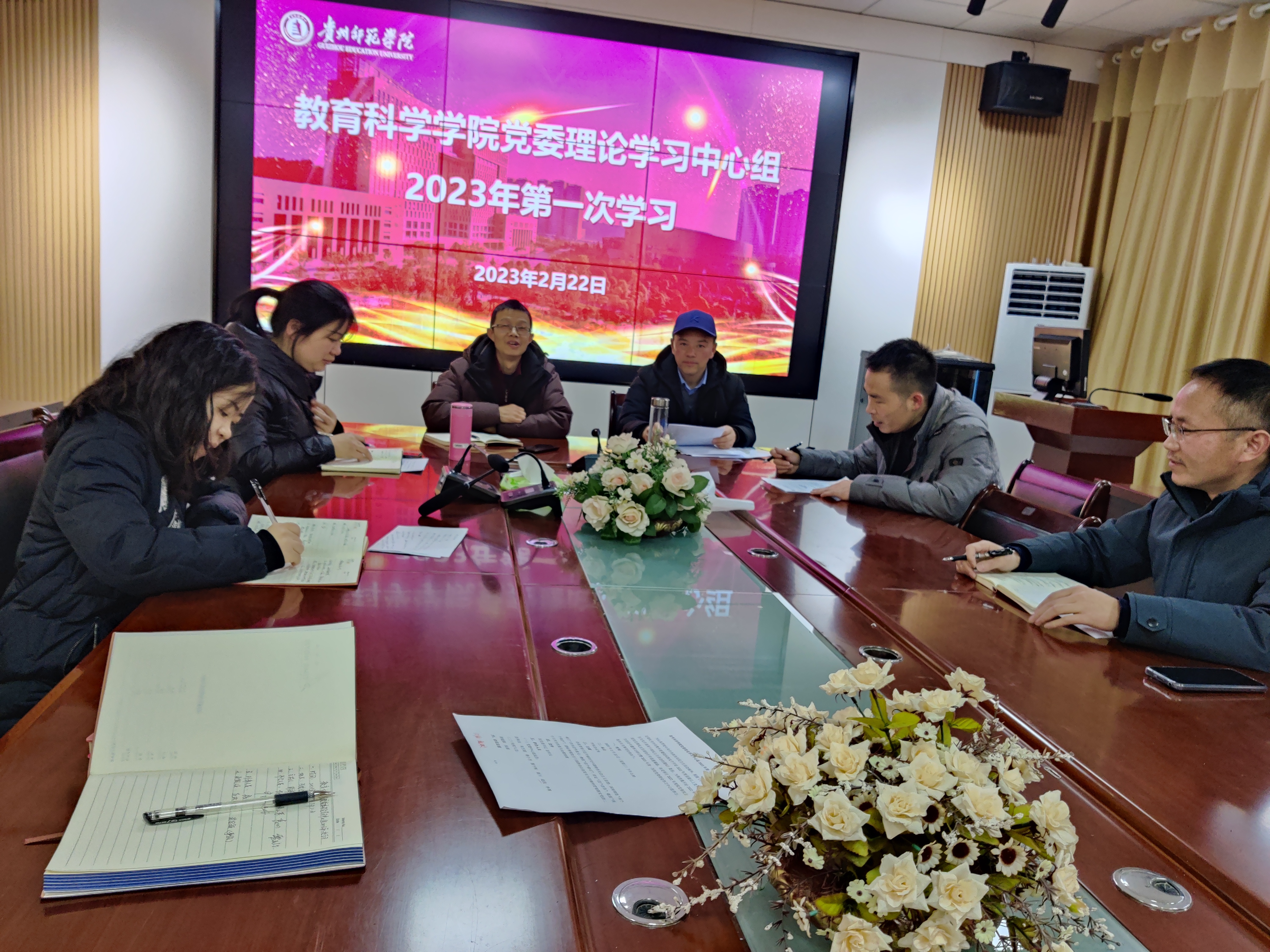 党委中心组在学院会议室进行集体学习。学习主题为全面贯彻习近平新时代中国特色社会主义思想,深刻领悟“两个确立”的决定性意义,增强“四个意识”、坚定“四个自信”、做到“两个维护”,团结带领党员干部群众以奋发有为的精神贯彻落实党的二十大作出的重大决策部署。学院党委委员、党支部书记、团委书记、办公室主任参与了本次学习,党委书记彭祥友主持学习。
