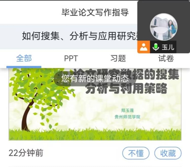 通过举办本次专题讲座,让2019级同学们能及时修改并完善毕业论文,且通过分享和交流,也让2020级同学们汲取经验少走弯路,快速掌握正确的文献检索方法,在错综复杂的网络资源中收集到优质的研究素材,为今后学生科研和毕业论文撰写做好充分准备。