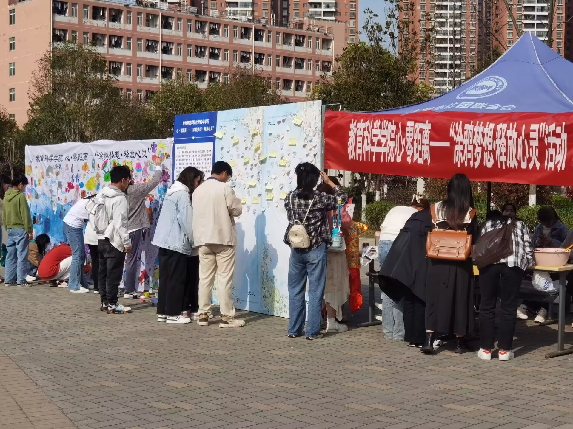 在学校鉴湖旁开展以“涂鸦梦想,释放心灵”为主题的心理健康活动。此次活动由成人色情