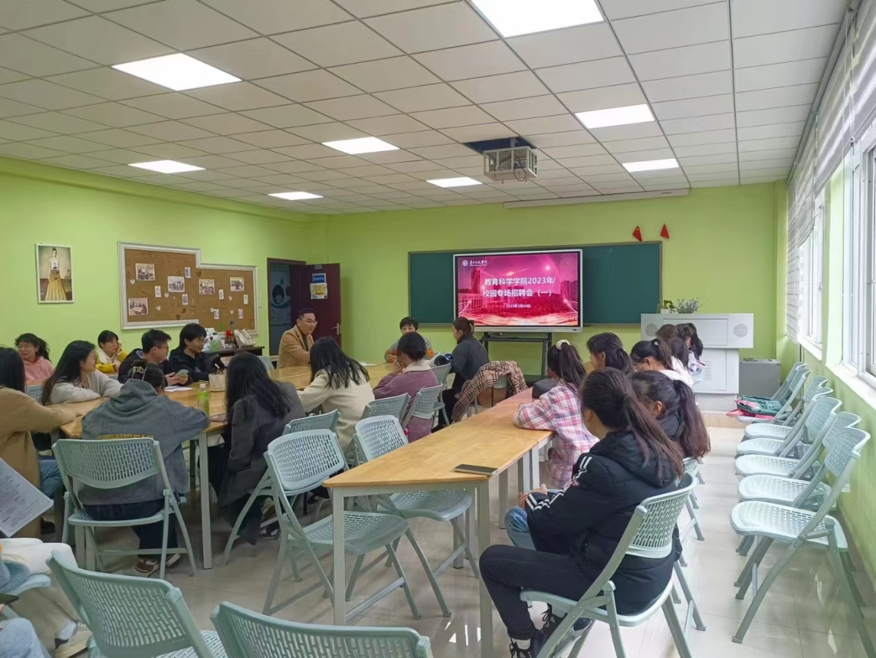 2023届毕业生现场招聘会在逸夫楼心理咨询中心215教室召开。此次招聘会邀请到了贵阳市常青藤儿童之家的董事长郑飞一行3人到我院宣讲。此次招聘会由学院辅导员鲁蓓蓓主持。