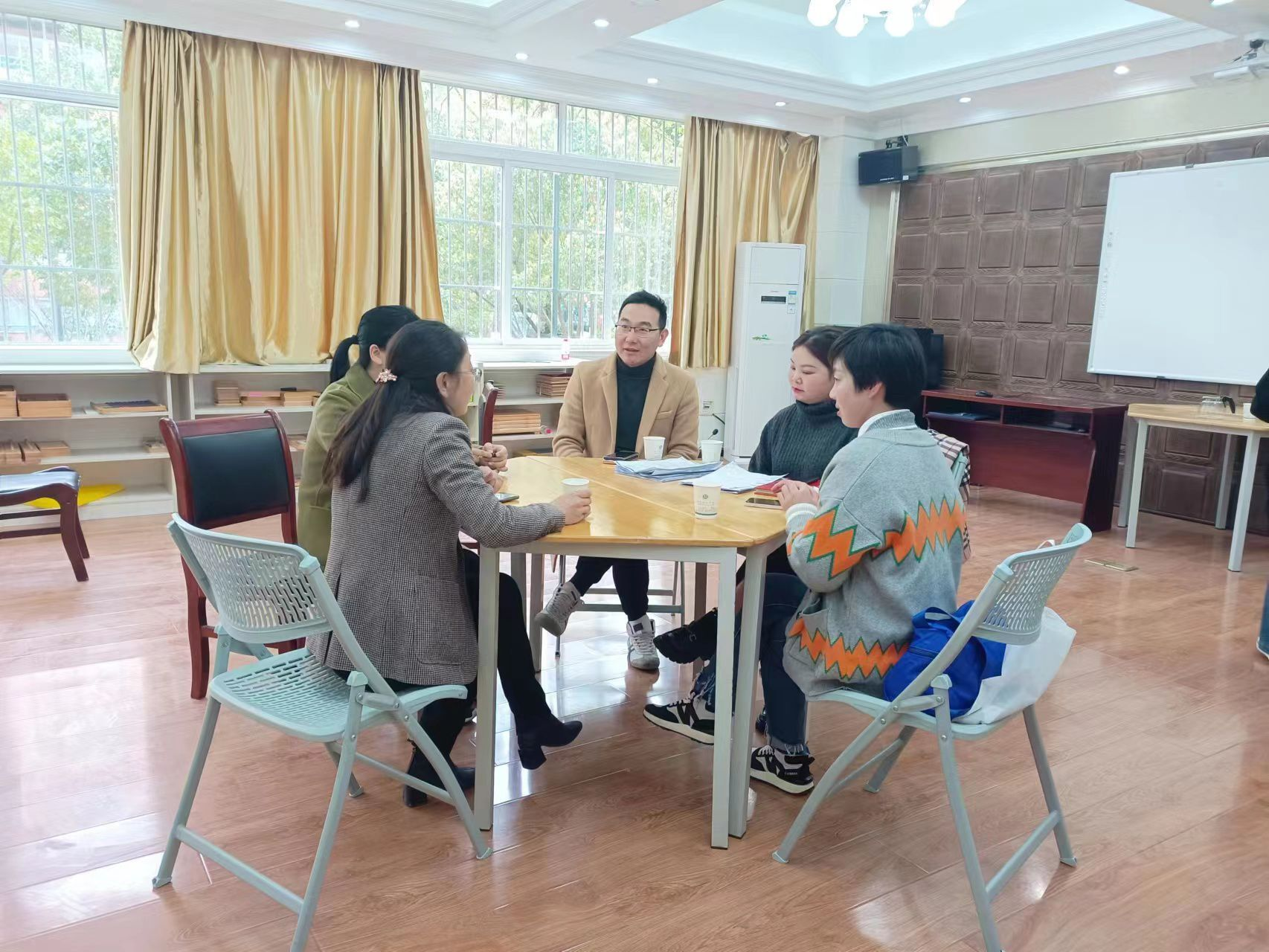 与贵州省贵阳市常青藤儿童之家集团在逸夫楼A211教室举行座谈会。贵州省贵阳市常青藤儿童之家董事长郑飞、园长严绍梅等负责人与成人色情