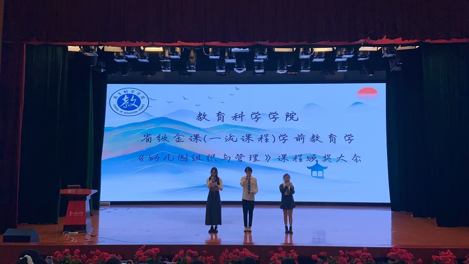 贵州省“金课”(一流课程)《学前教育学》、《幼儿园组织与管理》课程学习展示暨颁奖典礼在逸夫楼演播厅举行。成人色情