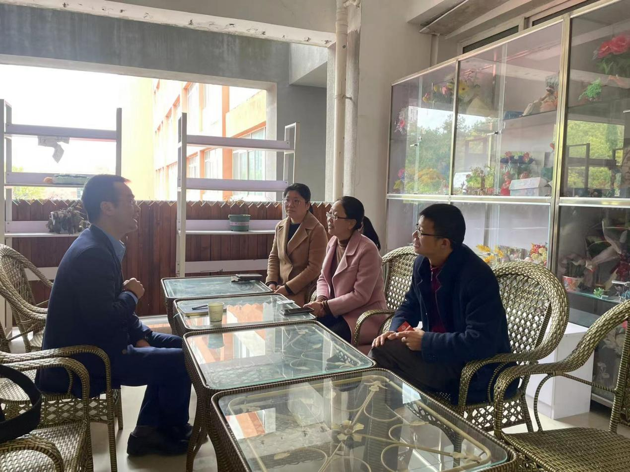 与贵州万众益心心理健康产业发展有限公司在逸夫楼三楼学习角举行座谈会。贵州万众益心心理健康产业发展有限公司合伙人熊强刚与学院党委书记肖湘萍、院长宋万琚、党委副书记傅小芳、对接招就处专职辅导员鲁蓓蓓参加了此次交流。