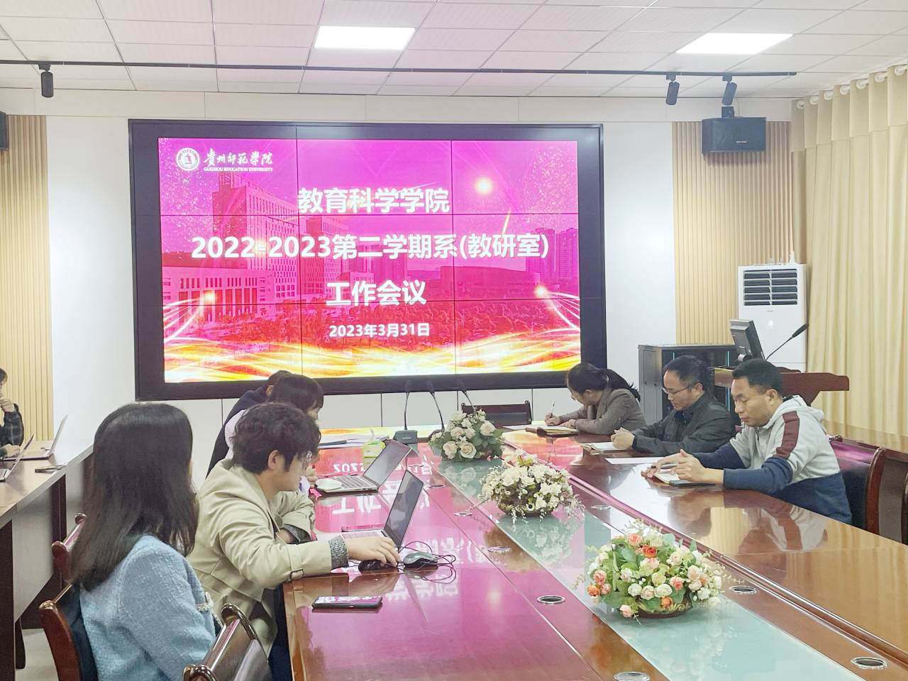 2022-2023第二学期系(教研室)工作会议于2023年3月31日在学院会议室召开,学院领导和各系(教研室)主任参加了会议,副院长黎平辉主持会议。
