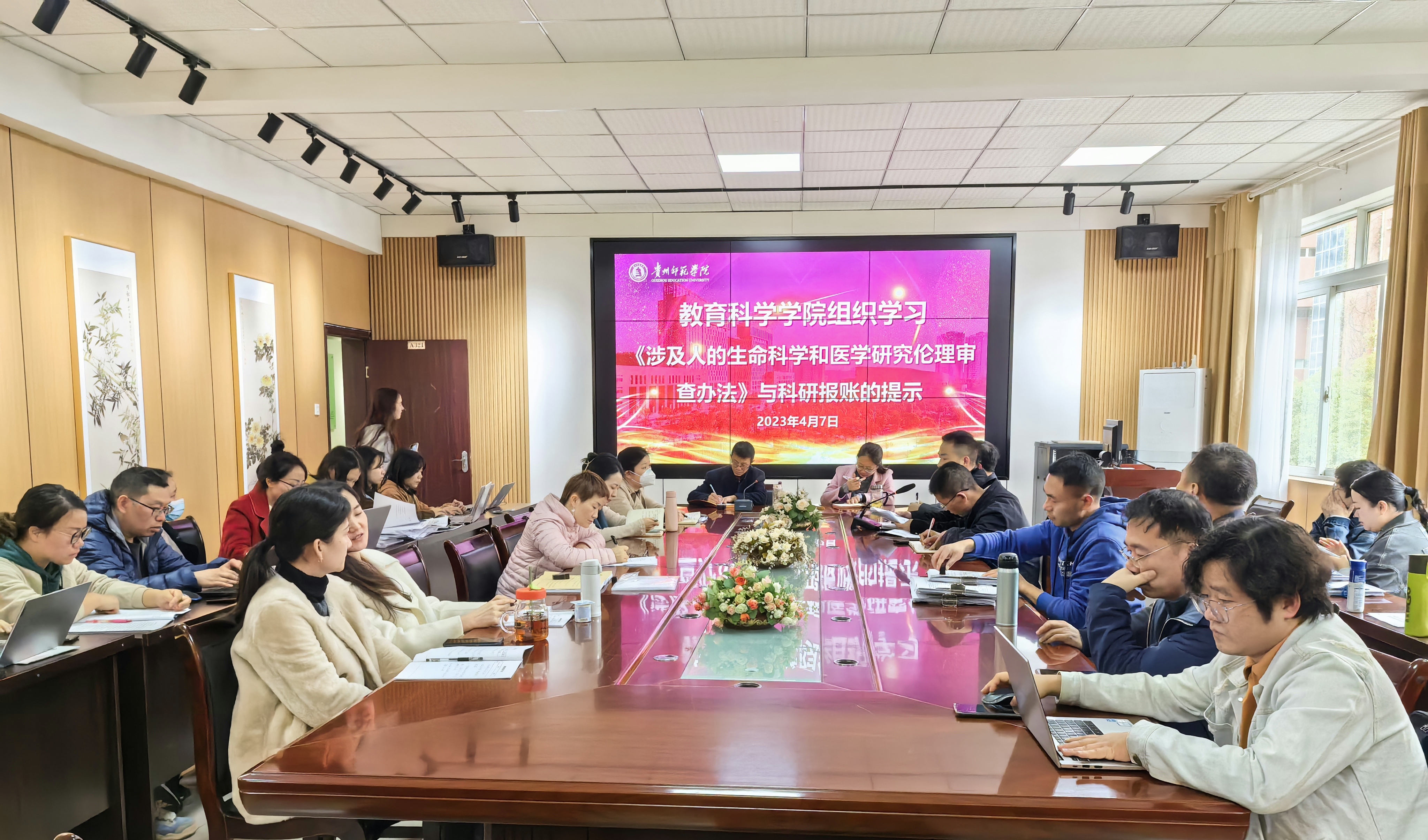 在学院会议室开展《涉及人的生命科学和医学研究伦理审查办法》学习会。此次学习会由学院院长宋万琚主持,副院长袁川领学。