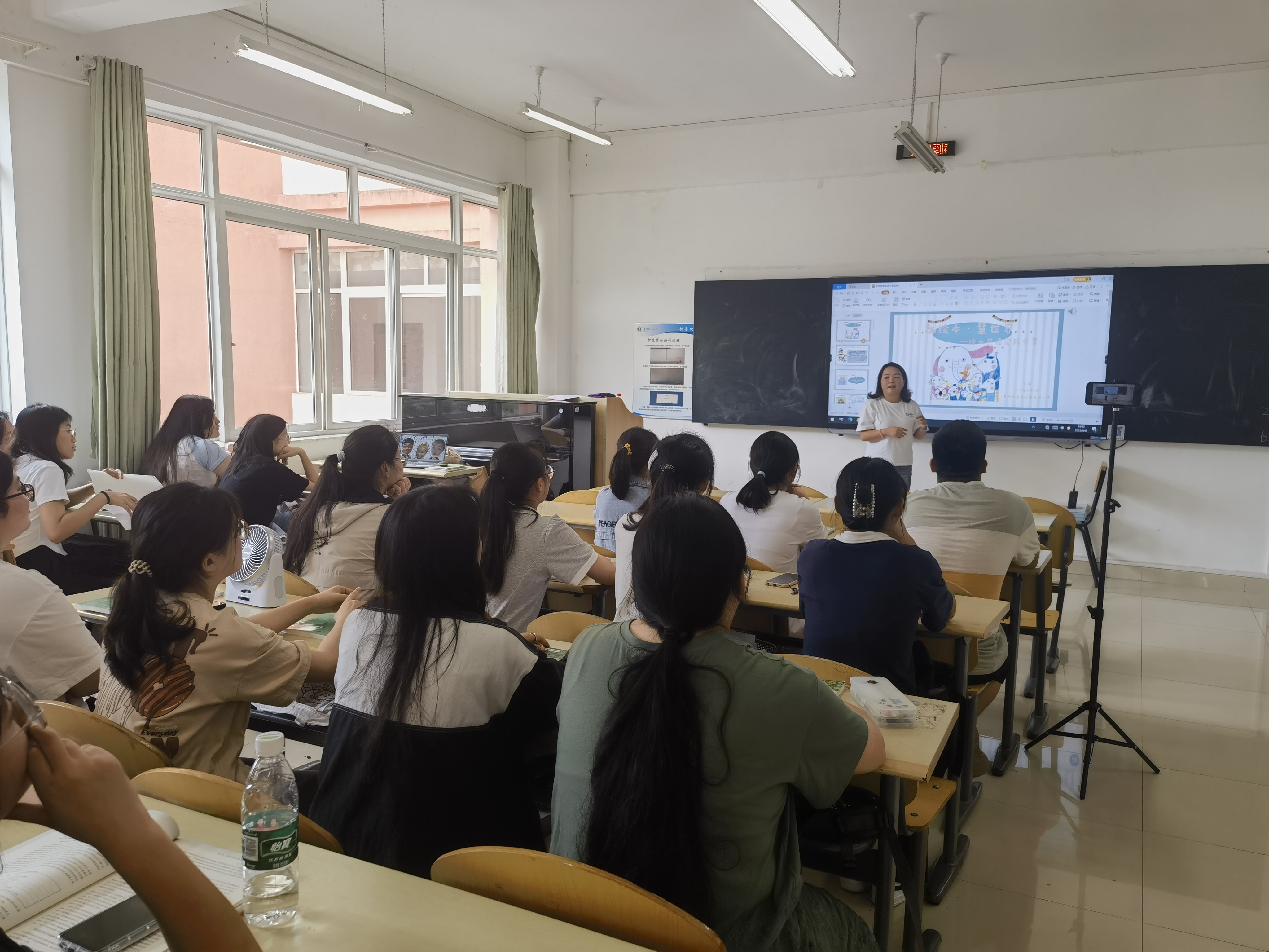 李婷老师的讲座主题为“绘本共读实践分享”,围绕主题李老师从师幼共读、亲子共读两个方面展开分享,结合具体生动的实践案例梳理了“共读”的步骤与反思总结,从亲子阅读的价值和实践思路进行了详细的介绍。作为乌当区区级绘本教研活动的负责人,李婷老师分享了近期区级教研的最新实践研究成果,同学们受益匪浅。