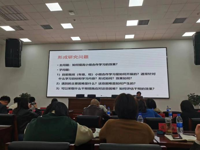 讲座中,林教授主要从课题研究的基本思路、课题研究过程及策略、课题研究成果的凝练三个维度进行了细致地讲解。首先,林教授用“一个人的困惑”启发教师在日常工作中发现研究问题,并结合一个实践改进的例子,详细讲解课题研究设计。林教授强调课题选题的重要性,她指出,提出一个问题比解决一个问题更重要,做好课题研究首先要学会确定研究,林教授对课题研究设计的过程、基本步骤进行了详细地阐述,介绍了如何确定研究对象、多种有效的研究策略及方法,理清了教师们做课题研究的基本思路。随后,林教授对教育研究的过程、基本步骤进行了详细地阐述,介绍了常见的研究工具、如何确定研究对象、多种有效的研究策略及方法,理清了教师们做教育研究的基本思路。最后,林教授明确提出教育研究的成果是大量且丰富的,教师对课题研究成果的凝练是必要的,并且要采用多样的方式对课题研究成果进行呈现。讲座过程中,老师们专注聆听、积极思考、认真记录。讲座后,老师们纷纷把选题遇到的困惑向林教授请教,林教授耐心地为大家答疑解惑。