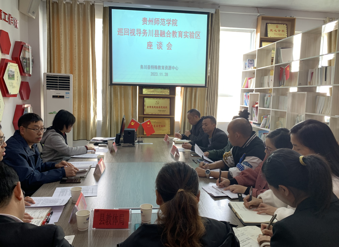 2023年11月27-28日,视导专家组贵州师范学院特殊教育系系主任雷经国、教师邓秀平、贵阳市特殊教育学校教务主任刘志彬等一行前往务川县开展融合教育实验区、实验校的视导工作。务川县教体局、务川县特殊教育学校的相关领导和教师全程陪同参加了本次视导工作。
