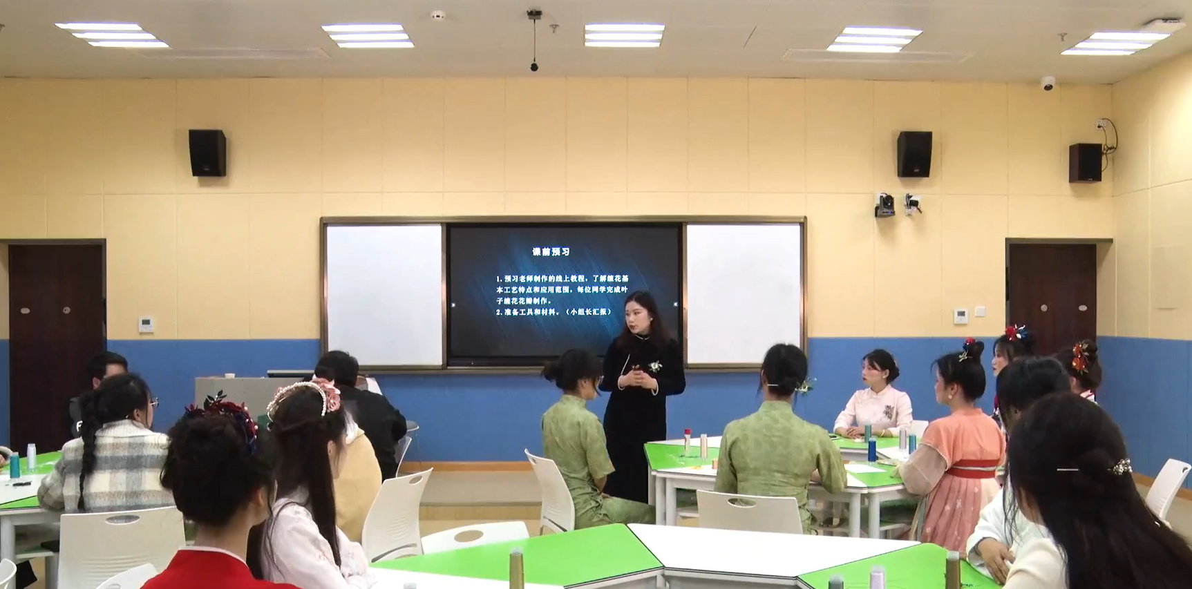 龙雪梅老师在逸夫楼413教室进行教学节院级公开课授课,课程内容为《美工》第四章缠花艺术,学院领导、二级教学督导和部分教师观摩了此次教学。