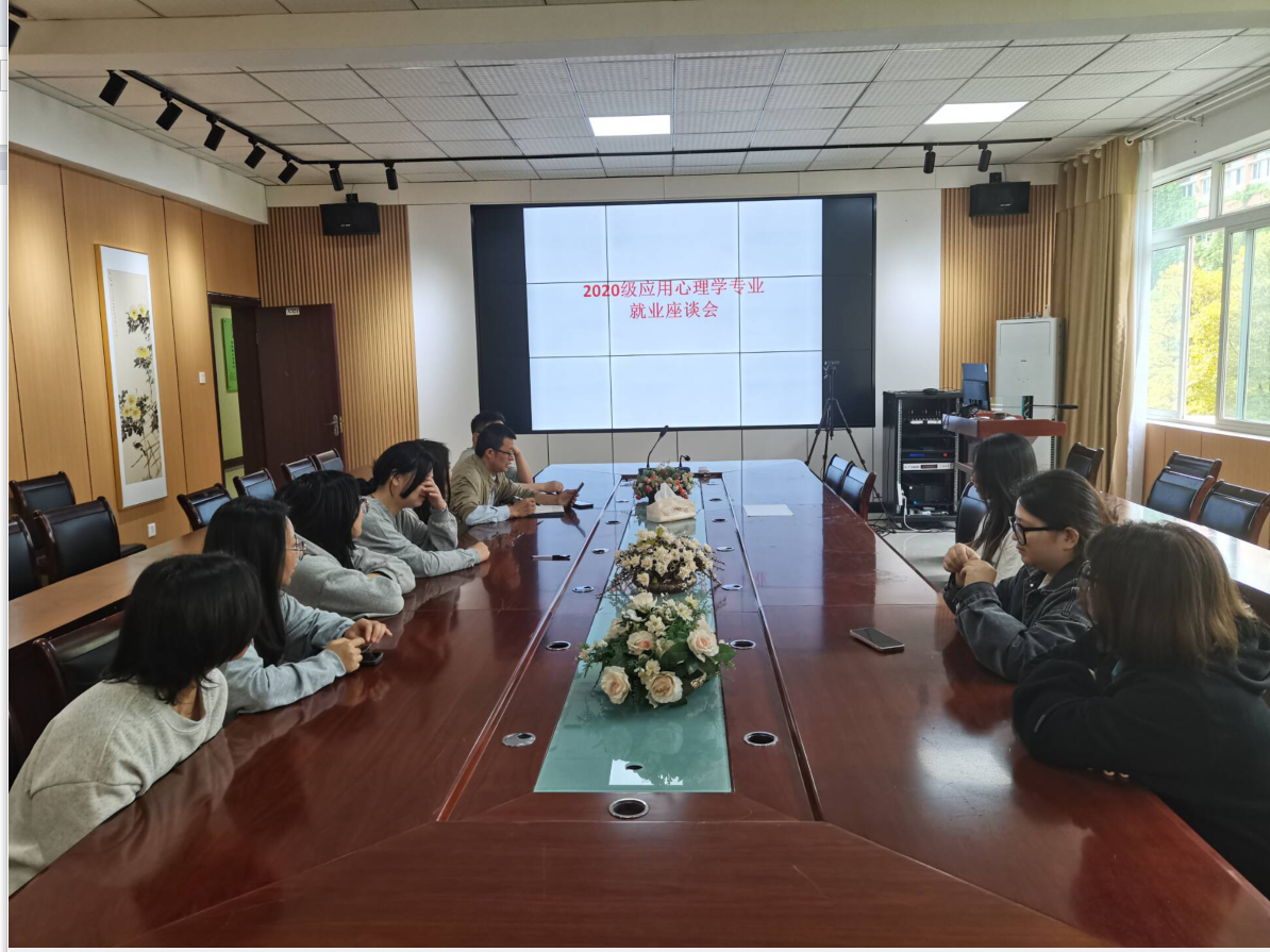 应用心理学系在学院会议室逸夫楼321会议室召开2020级应用心理学班就业座谈会。会议采用线上和线下相结合的方式进行。成人色情