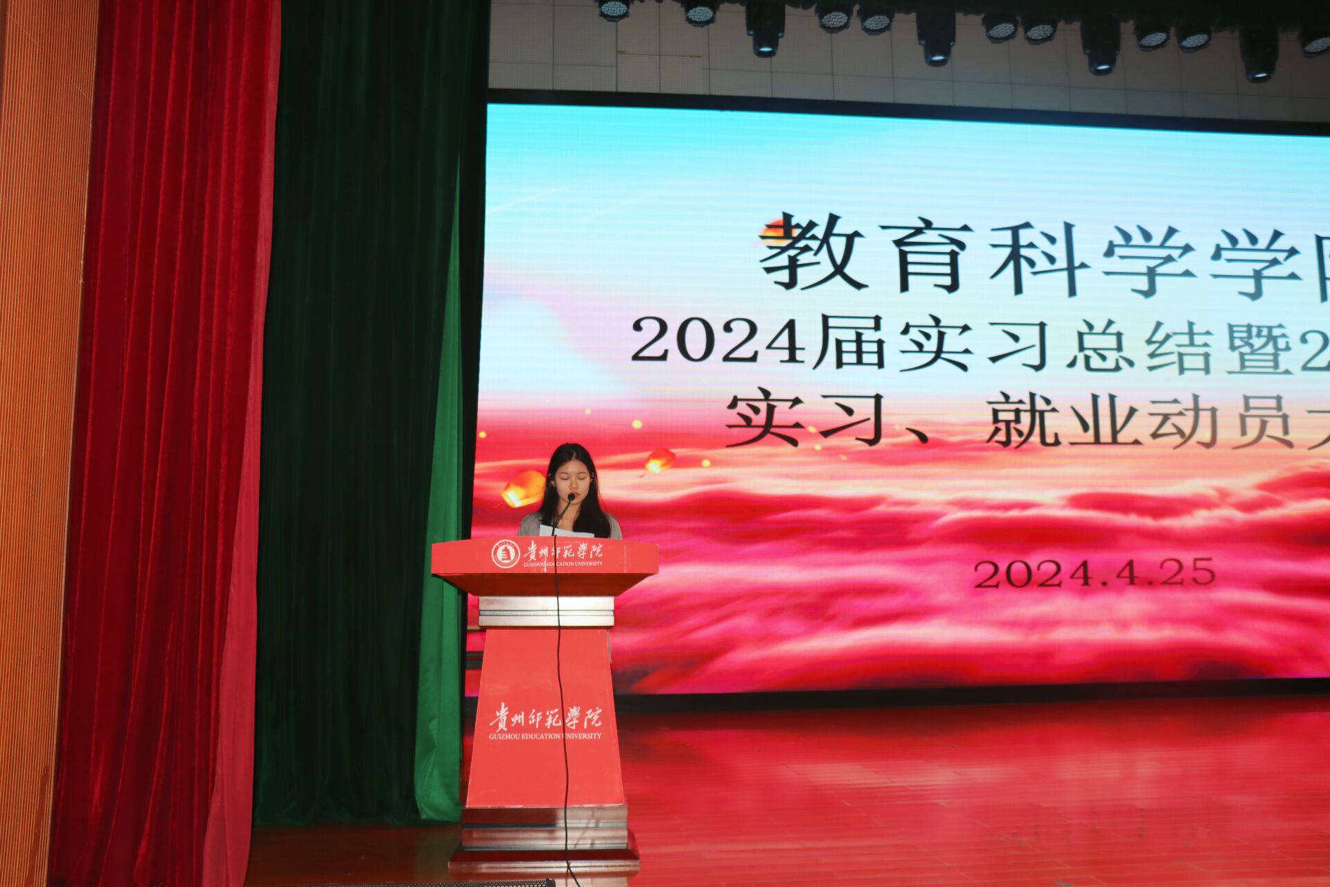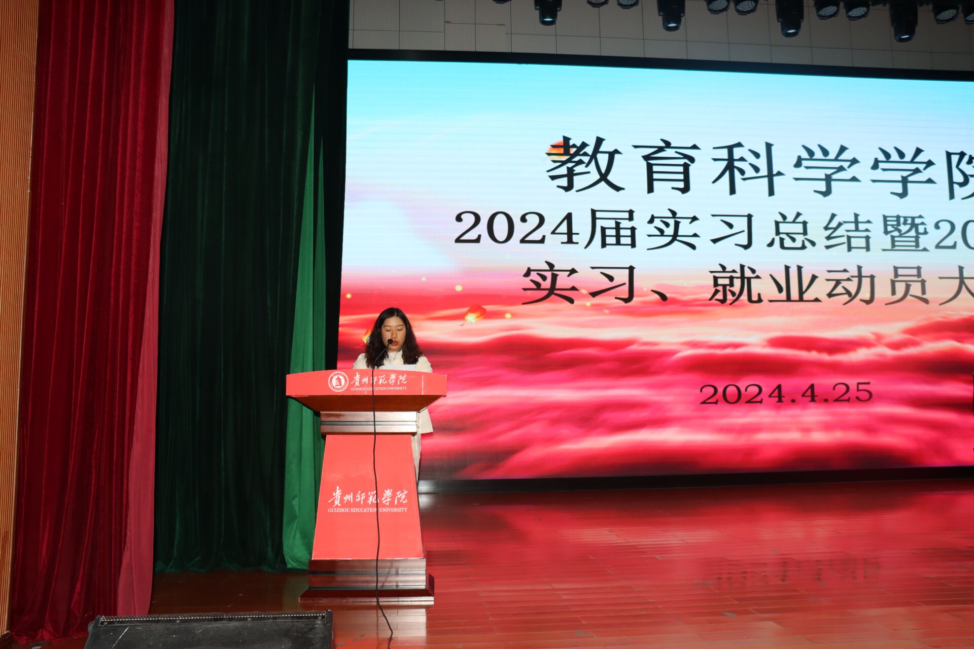 在逸夫楼演播厅举办了 2024 届实习总结暨 2025 届实习、就业动员大会,本次大会旨在总结 2024 届学生实习经验,同时为即将踏上实习岗位的 2025 届学生进行指导。本次大会由黎平辉副院长主持,全体院领导、系主任、辅导员(班主任)、实习指导老师、2021级全体学生、2020级学生代表参会。