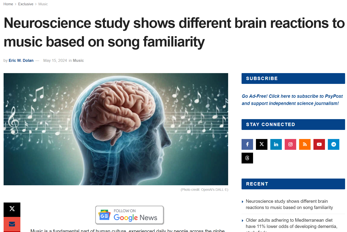 PsyPost对该研究进行了评论:“音乐是人类文化的基本组成部分,全球各地的人们每天都会通过音乐来唤起情感和回忆。最近发表在《Cerebral Cortex》杂志上的这项研究为我们提供了新的见解,该研究解释了我们的大脑是如何对熟悉以及不熟悉的音乐进行神经加工的。使用先进的大脑成像技术,该研究团队发现,熟悉和不熟悉的音乐激活了我们大脑中不同的记忆系统,这揭示了支撑我们音乐体验的神经生物学过程。”