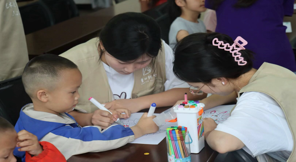 志愿者带小朋友进行曼陀罗绘画
