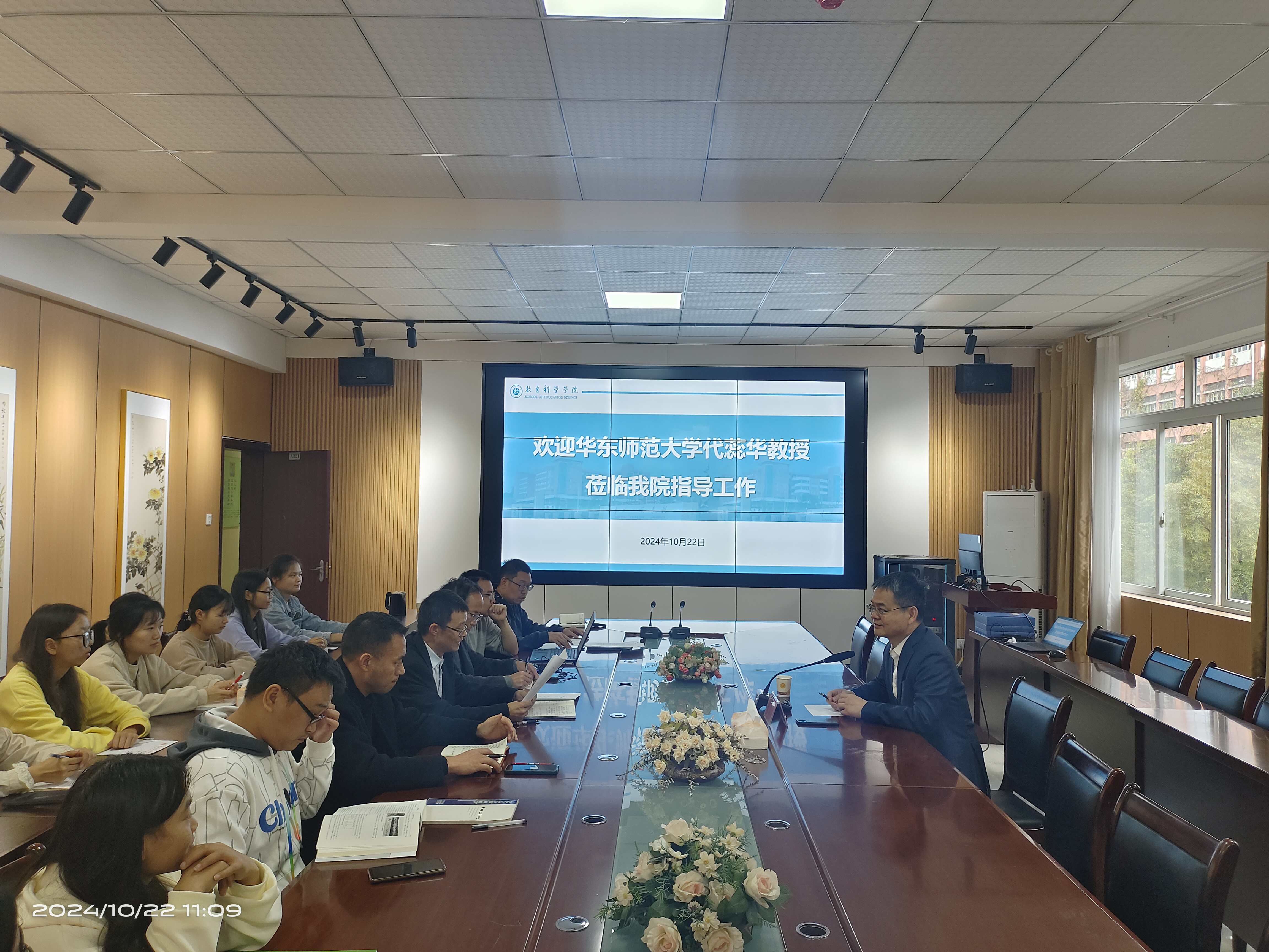 10月23日,华东师范大学代教师教育学院院长蕊华教授应邀莅临我院指导工作,院长宋万琚、副院长黎平辉以及相关系主任和师生参会,座谈会由宋万琚主持。