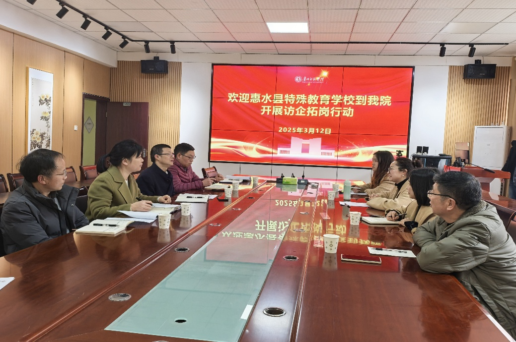 迎来惠水县特殊教育学校朱燚校长一行,双方在逸夫楼321会议室开展访企拓岗,学院院长宋万琚、副院长黎平辉、副书记傅小芳、特殊教育系主任雷经国、杨娟老师、安文军老师到场参加。