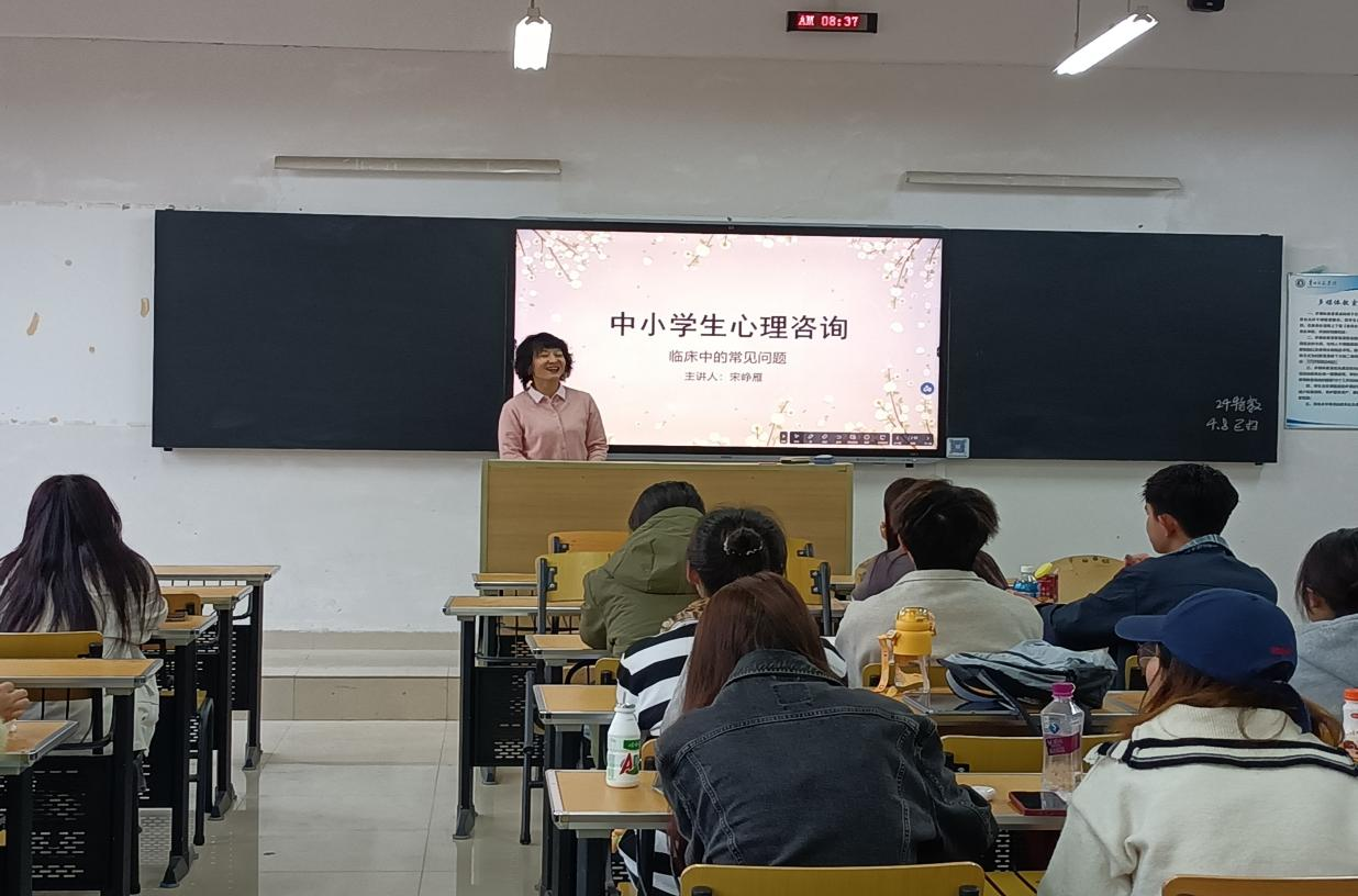 在讲座现场,应用心理学专业2022级同学认真聆听,积极与宋老师互动,就实际案例展开探讨。大家纷纷表示,此次讲座不仅深化了对课本知识的理解,更掌握了实用的临床技巧,为未来从事心理咨询工作奠定了坚实基础。