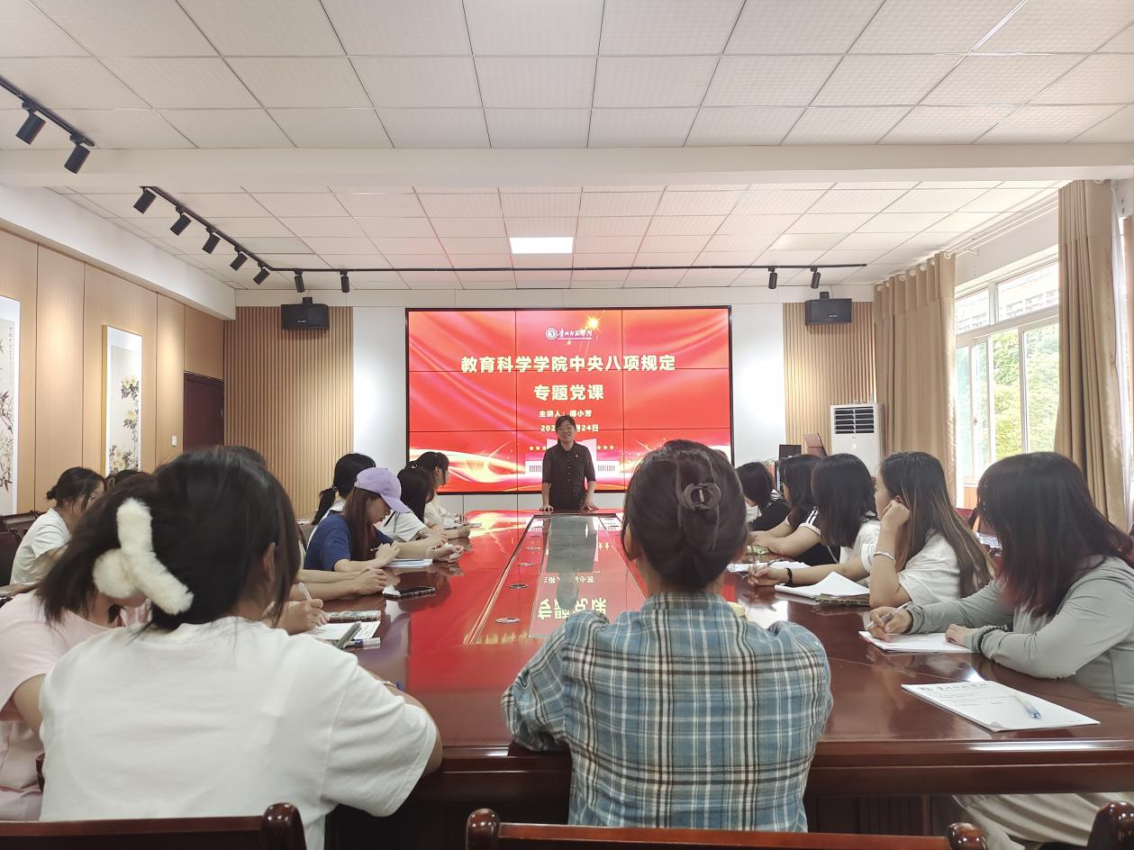 6月24日,副院长袁川与学生党支部党员分享中央八项规定的典型案例。通过一个个真实且生动的案例,他深入浅出地阐述了中央八项规定在实际工作和生活中的具体体现,让党员们深刻认识到中央八项规定对于规范党员行为、维护党和政府形象的重要性。这些案例不仅是警示,更是行动指南,促使党员们时刻保持警醒,严格自律。