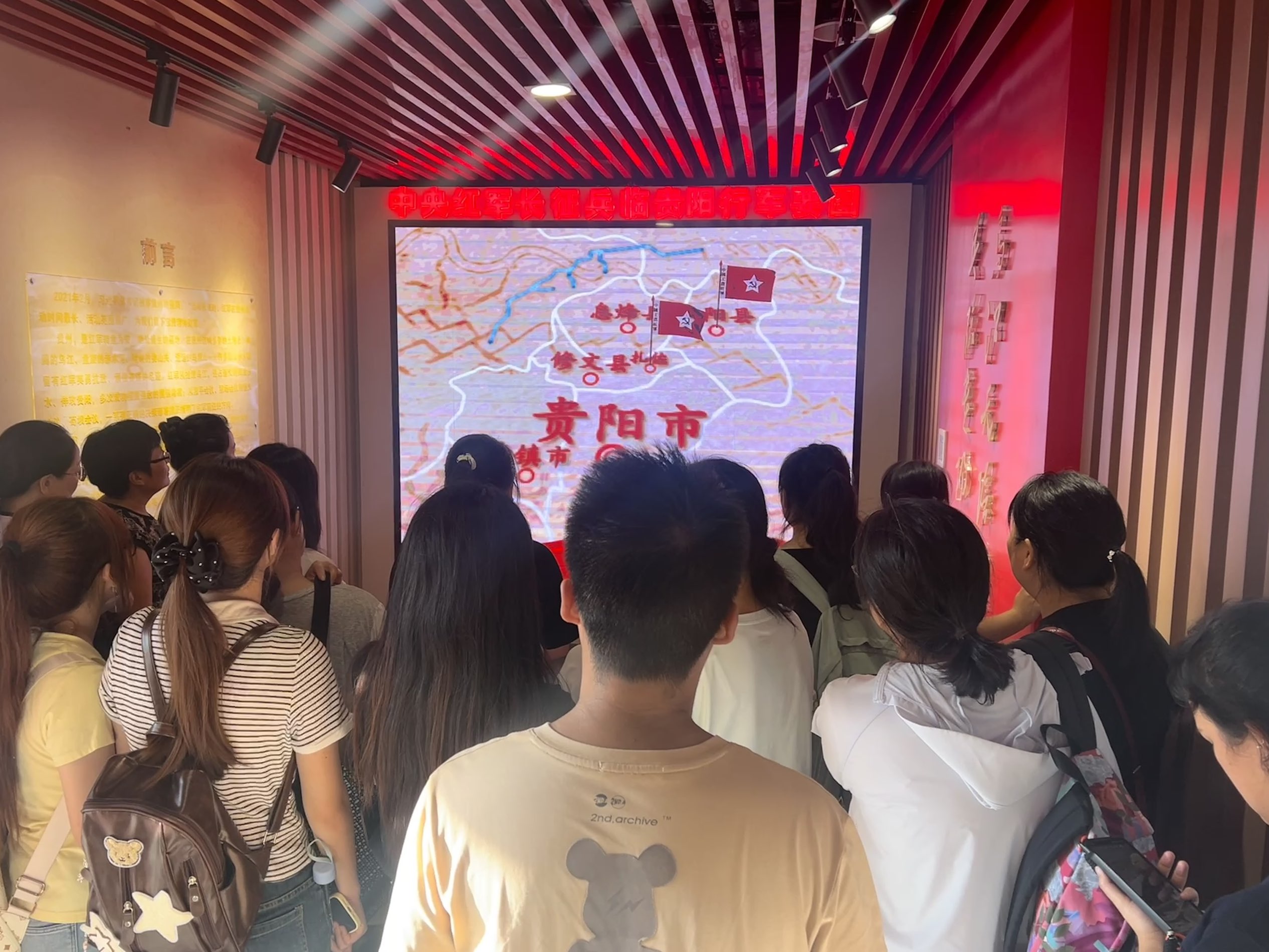 本次活动在庄严肃穆的氛围中开始。师生们第一站抵达红军牺牲地,聆听现场宣讲《先烈们用生命换来我们的诗与远方》,并举行缅怀仪式,集体默哀、敬献鲜花,接着由肖湘萍带领全体师生重温入党誓词,深刻感悟革命先辈坚定的理想信念与英勇献身精神。随后,师生们沿着红军曾经走过的道路,经拥军坟、红军居住地、六方井等红色遗址,一路聆听讲解,体验长征艰苦历程。在居住地区域,宣讲员动情讲述《三双鞋子·映初心》的故事,透过红军战士物资匮乏仍信念不改的细节,生动映照出共产党人的初心使命。沿途,师生们认真观看红军标语和漫画,参观兵临贵阳陈列馆,透过一件件实物、一张张图片,系统了解了红军长征途经贵阳的历史背景和重大意义。活动最后,师生们在红军餐厅体验了一顿具有革命传统意义的晚餐,进一步体会到当年红军在艰苦条件下的乐观与坚韧。