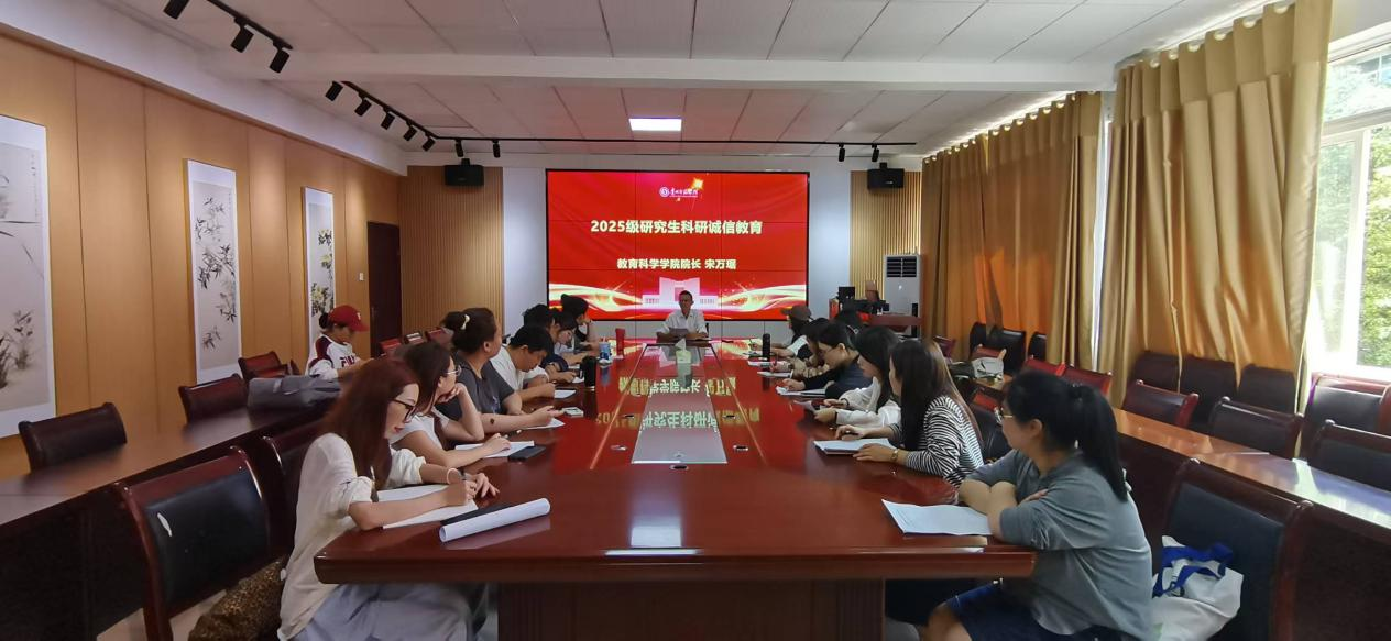 他要求全体2025级研究生:一要以德立学,将学术道德内化于心、外化于行,在日常学习和科研实践中自觉维护学术尊严;二要严谨为学,敬畏真理,注重原始数据的真实性和论证过程的逻辑性,坚决杜绝抄袭剽窃、数据造假等行为;三要尊重原创,正确引用他人成果,培养独立思考和自主创新能力。宋院长寄语新生,“学术之路无捷径,唯有一丝不苟、脚踏实地,方能行稳致远,成为不负时代期望的卓越教育人才。”