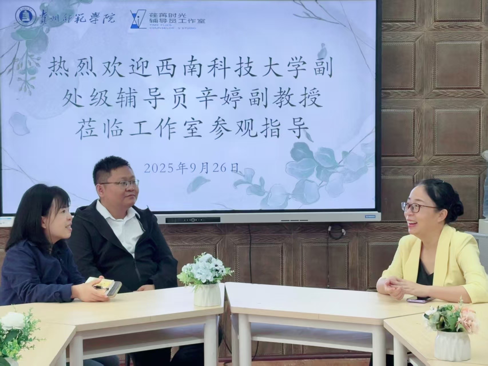 荏苒时光辅导员工作室,围绕特色辅导员队伍建设、专业型育人模式创新等核心内容开展参观指导与交流座谈。学工部副部长官鹏飞、工作室主持人申苒及工作室骨干成员全程参与。双方就新时代高校专业赋能育人工作的重点方向与实践路径展开深入探讨。