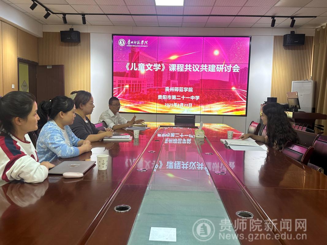 课程组教师就课程目标、内容模块、评价方式等与外聘教师进行了深入交流,就课程共建开展相关研讨。外聘教师曾译霄结合自身一线教学经验,分享了《儿童文学》课程的教学设想。一方面,以儿童心理发展规律为基础,引导学生深度理解儿童文学的情感表达与审美特质;另一方面,通过绘本创作、童话剧改编、校园阅读活动设计等实践项目,提升学生的教学设计能力;罗婷老师指出还可以结合贵州民族地区文化特色,探索本土儿童文学资源的开发与利用。