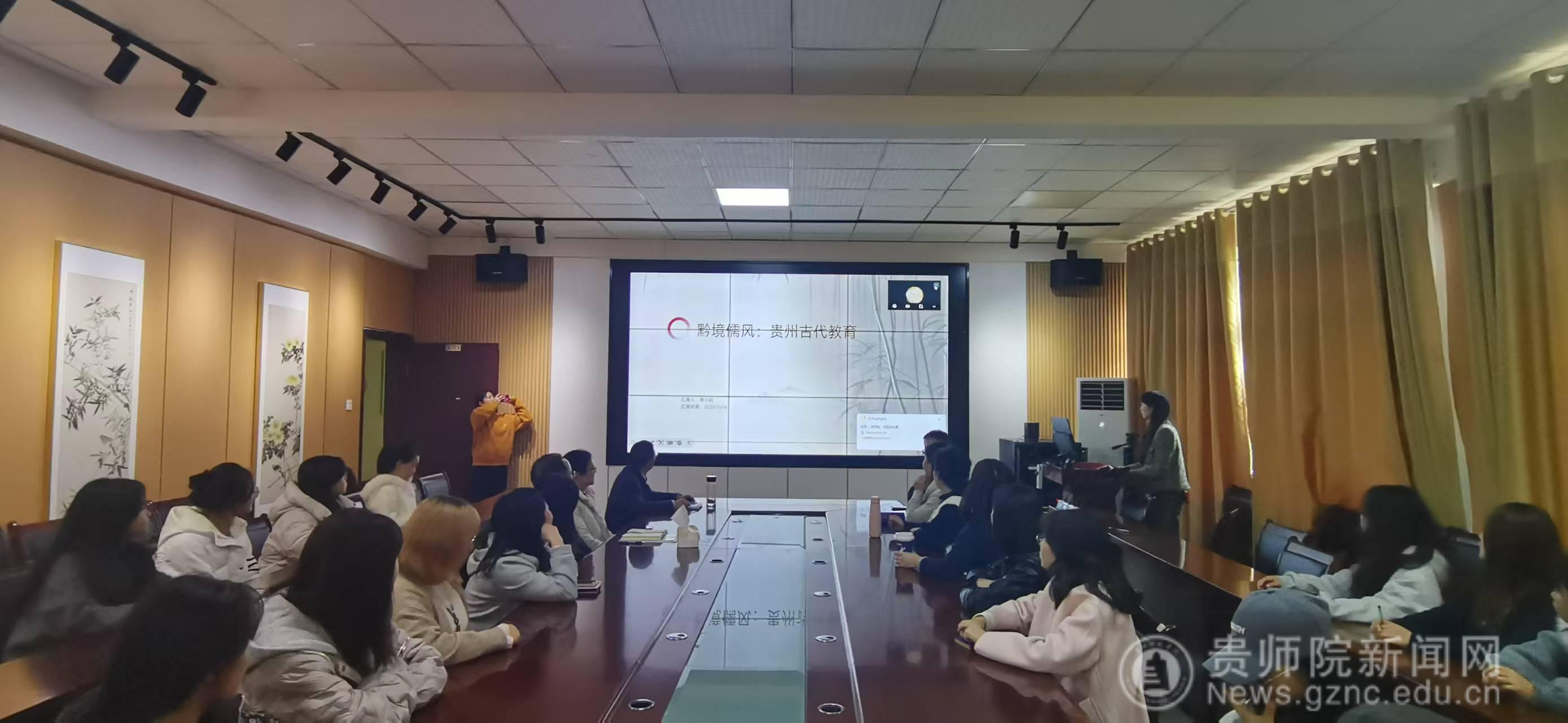 在学院会议室举行2025年印山讲坛学术讲座,学前教育系主任娄小韵教授以 《黔境儒风——贵州古代教育》为题,为师生们带来一场精彩的学术讲座。