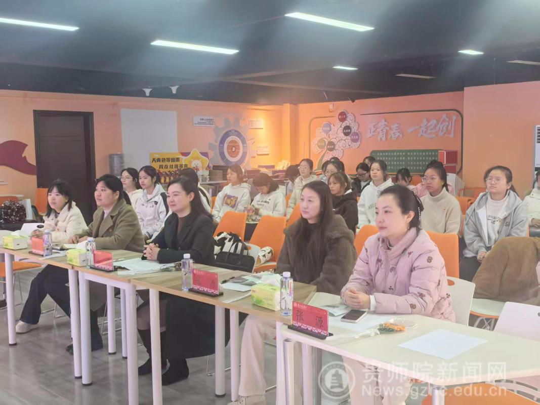11月28日,成人色情 2024级学前教育一班团支部“赓续红色基因,守护幼教初心”主题团日活动在学校青年创新创业中心顺利开展。贵州师范学院党委常委、统战部部长、继续教育学院院长张婷、校团委副书记寇源、成人色情 党委副书记傅小芳、团委书记张源及辅导员申苒出席活动。活动以微团课学习为开篇,将红色教育与学前教育专业使命深度融合,通过理论学习、实景展示、荣誉分享、诵读明志等多元形式,展现了青年学子扎根幼教、担当使命的青春风采,推动红色基因与幼教初心在青年一代心中落地生根。