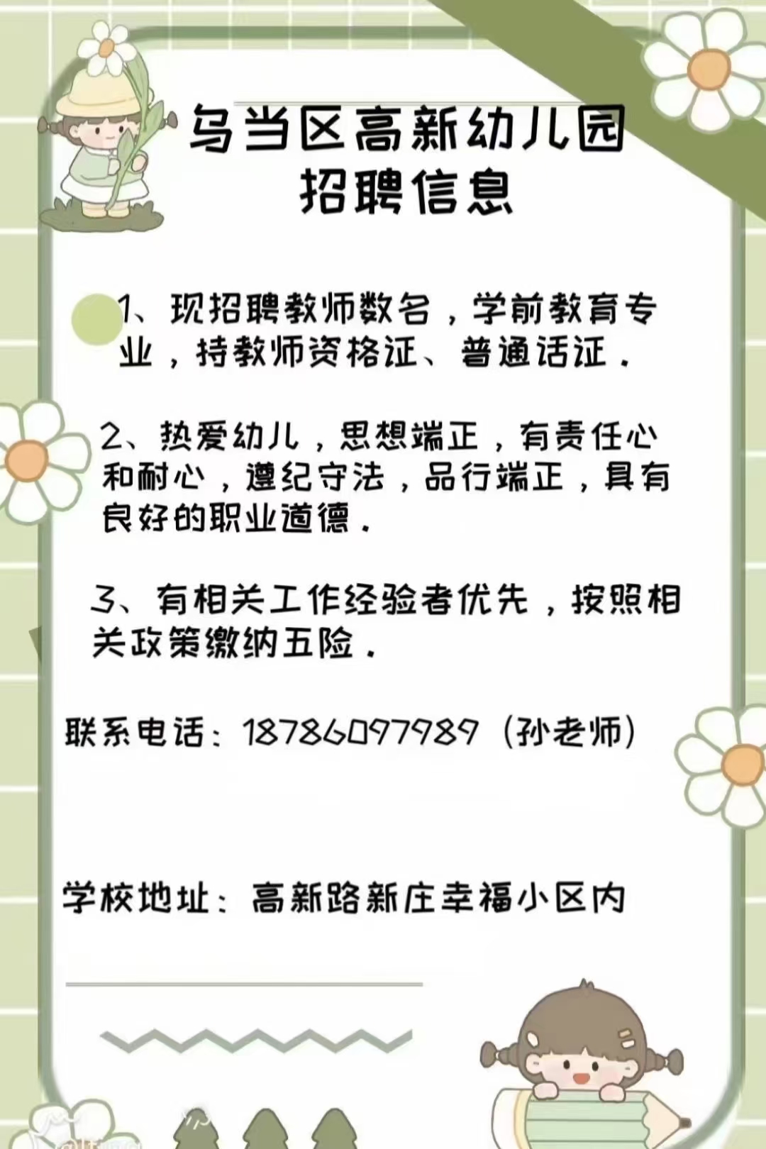 乌当区高新幼儿园招聘信息