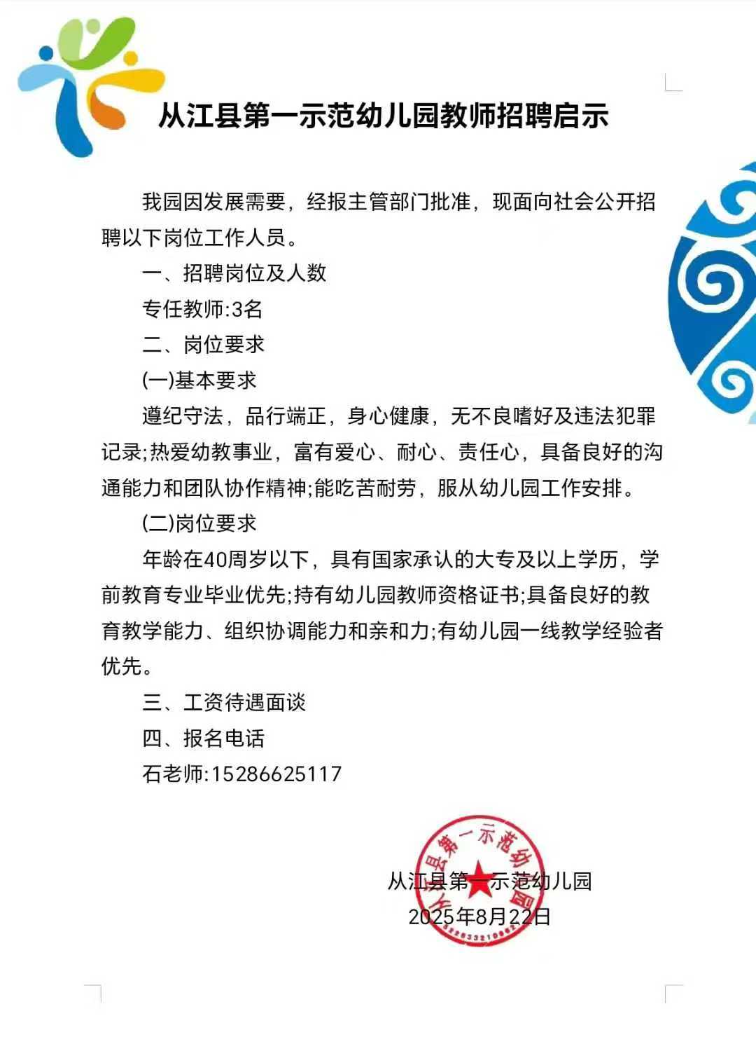 从江县第一示范幼儿园教师招聘