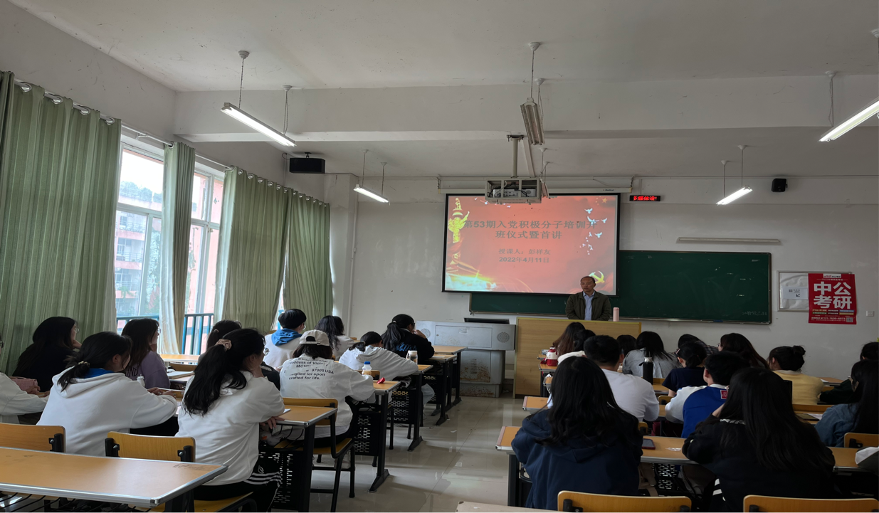 在逸夫楼503开展第53期入党积极分子培训班开班仪式及第一课。学院党委书记彭祥友出席此次开班仪式并开讲第一课,第53期共计30名入党积极分子参加。