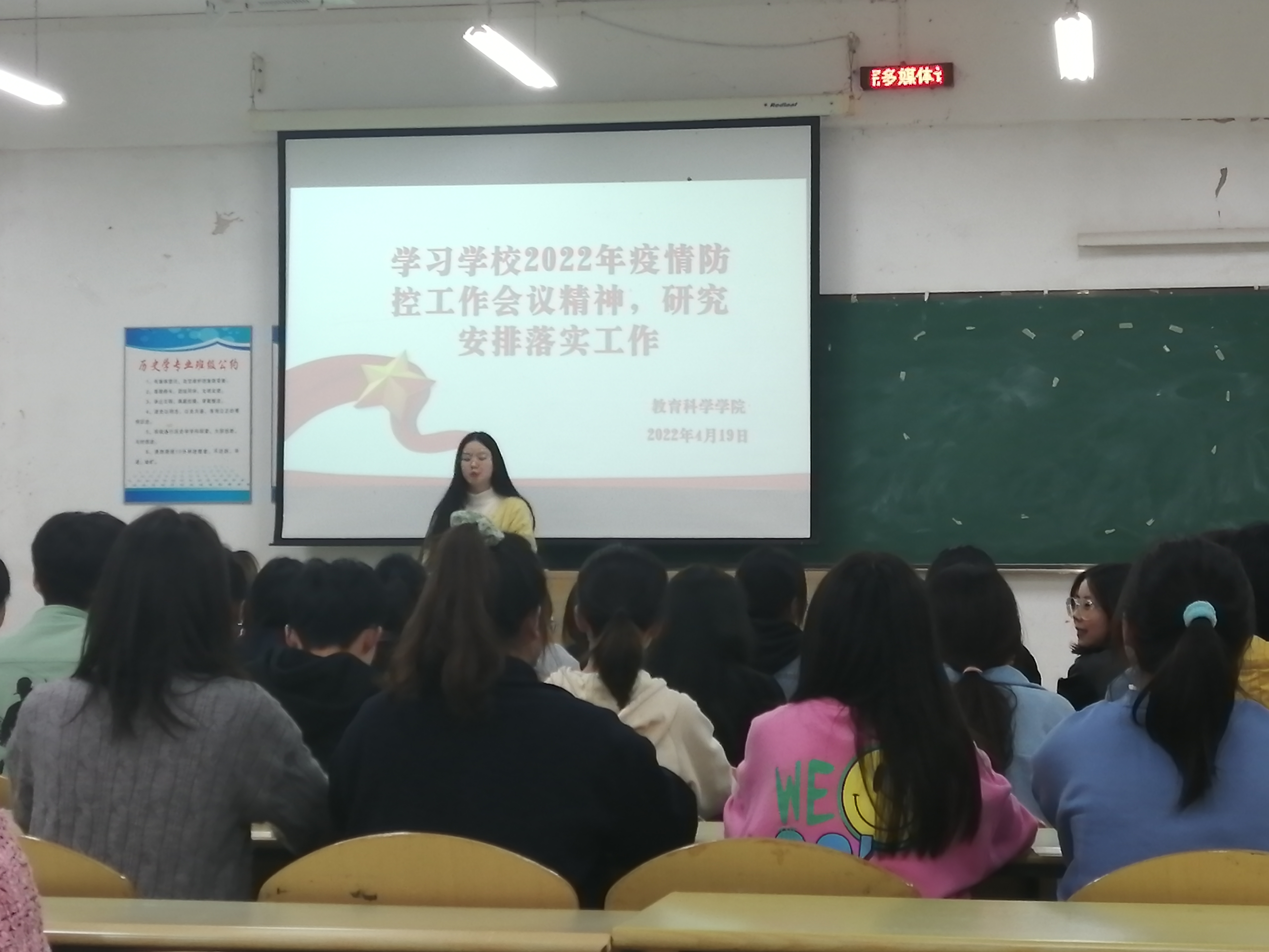 4月19日,成人色情 团委学生会全体成员在逸夫楼304学习了学校召开的疫情防控工作会议精神。