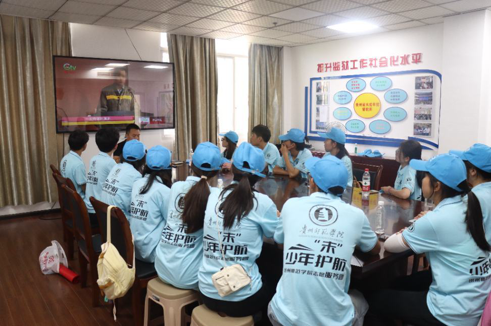 贵州师范学院未•少年护航暑期“三下乡”志愿服务队赴贵州省未成年犯管教所,与管教所的程诚警官于2024年8月8日上午一同开展了关于未成年人违法犯罪案件座谈会。