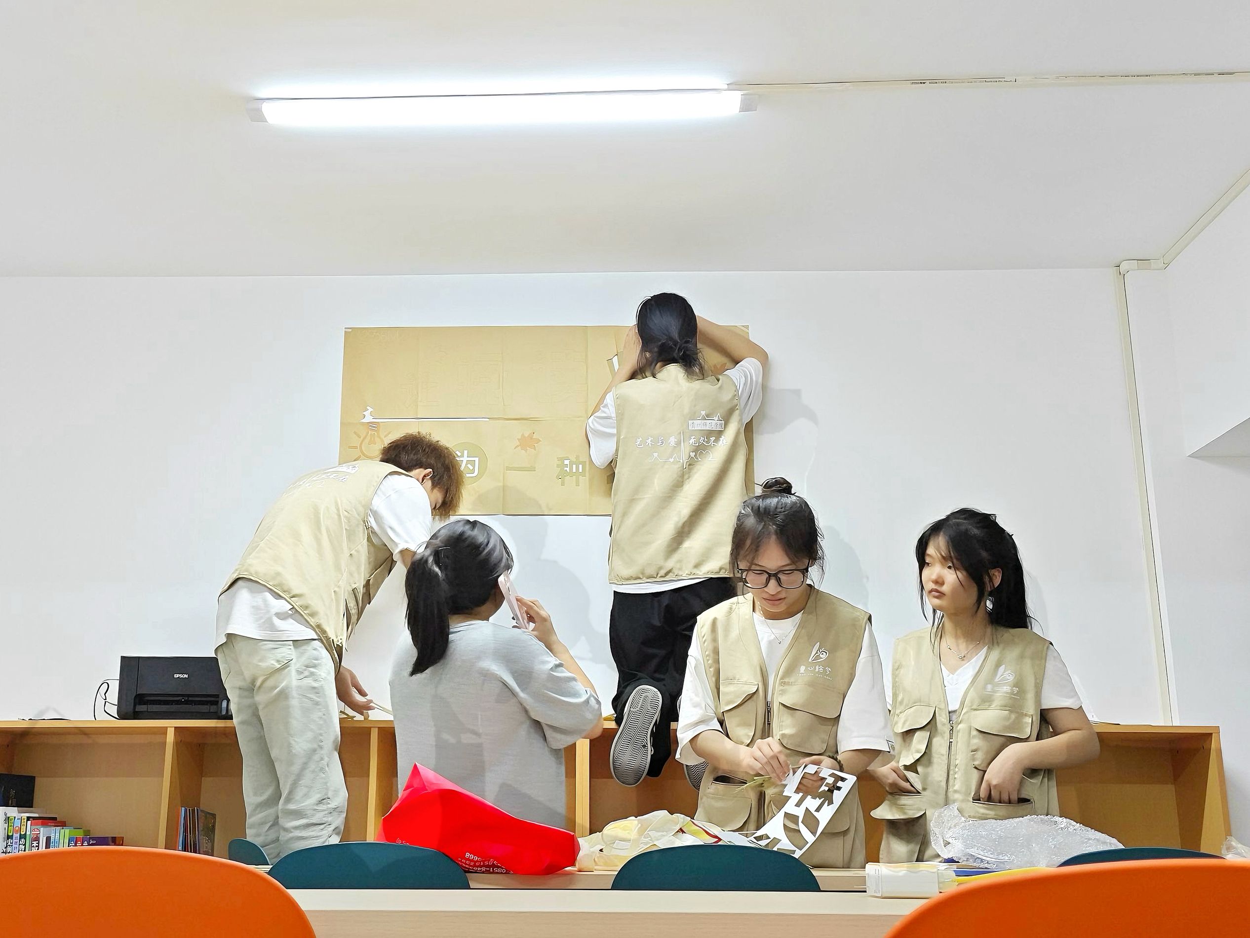 此次团队选择该站点作为实践基地,聚焦随迁子女群体,将专业所学融入社会实践,充分体现了大学生服务社会、关爱儿童的责任担当。活动首日,实践团队迅速进入状态。指导教师张源首先对全体队员进行了工作部署,强调了活动意义、安全纪律以及服务过程中的注意事项,要求大家以高度的责任感和饱满的热情投入实践。随后,队员们齐心协力,对益童乐园的活动场地进行了细致的打扫与布置,营造出更加整洁、温馨的环境,为后续活动的开展做好准备。接着,团队成员与益童乐园贵阳云岩站点的负责人李小露进行了深入交流与沟通。双方就本次“三下乡”社会实践活动的具体内容、课程安排以及预期目标等细节展开了务实而高效的讨论。最后经过充分协商,顺利确定了后续活动的详细流程和实施方案,为未来一段时间的精准服务奠定了坚实基础。