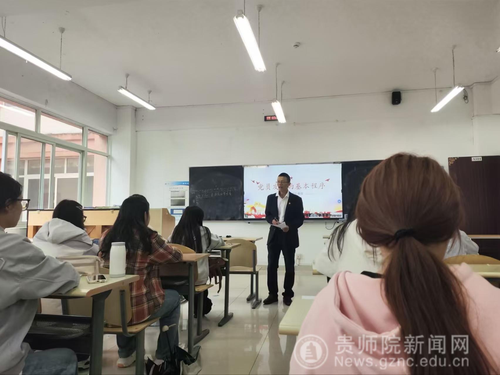 课程伊始,宋万琚以“党龄从什么时候算起”这一关键问题切入,引发学员思考讨论,随后结合党的建设历史,点明党员发展程序的严肃性与重要性,自然过渡到核心内容讲解,有效调动了学员的学习积极性。课上,他严格依据《中国共产党发展党员工作细则》,围绕党员发展“申请入党、入党积极分子的确定和培养教育、发展对象的确定和考察、预备党员的接收、预备党员的教育考察和转正”5个核心阶段展开讲解,重点强调各阶段的关键环节。同时,结合高校党员发展程序违规案例,通过“以案明规”的方式,让学员深刻认识到“程序合规是党员发展的底线”,任何环节都不能简化或省略。课程尾声,宋万琚对参训学员提出明确要求:一要主动学深悟透党员发展程序,对照标准梳理自身成长进度;二要以政治标准为首要准则,在学习、工作中发挥积极分子的先锋模范作用;三要严守程序纪律,杜绝任何材料造假、流程跳步的行为。学员们纷纷表示,此次党课让自己对入党流程有了系统认知,后续将严格按照程序要求,主动接受党组织考验,争取早日达到入党条件。