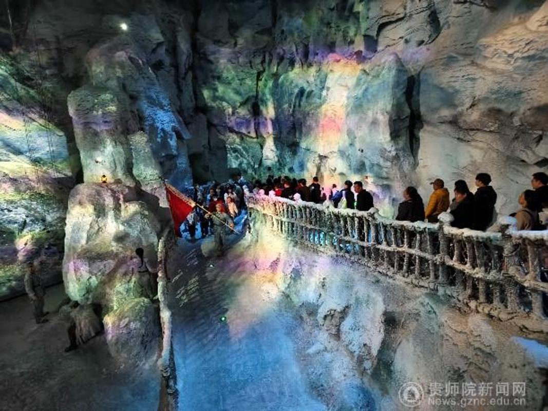 师生党员代表走进贵阳市红飘带长征数字科技艺术馆,在数字与历史的交融中,开启一场深刻的爱党爱国教育之旅。